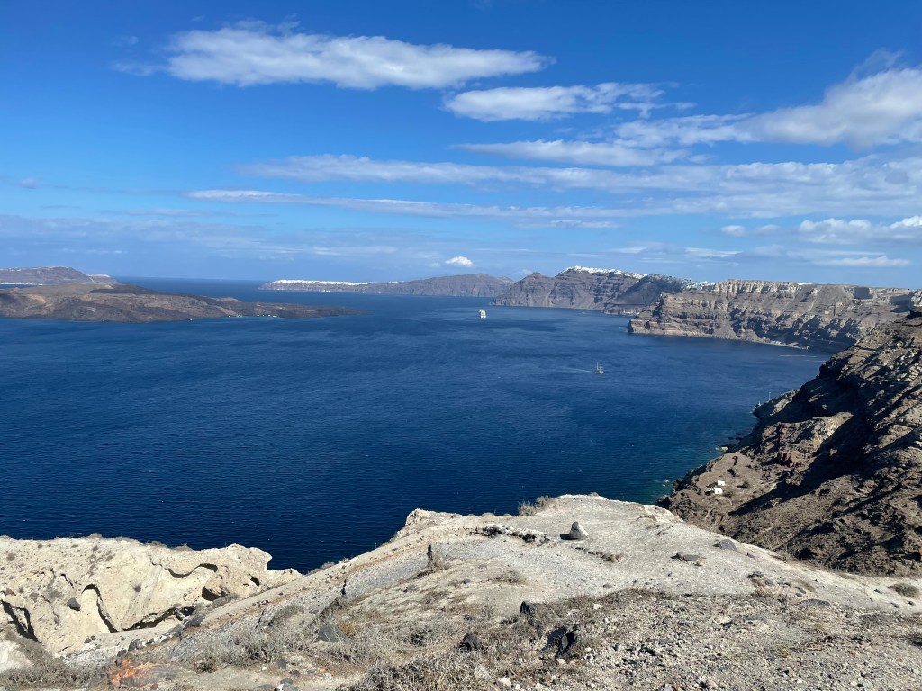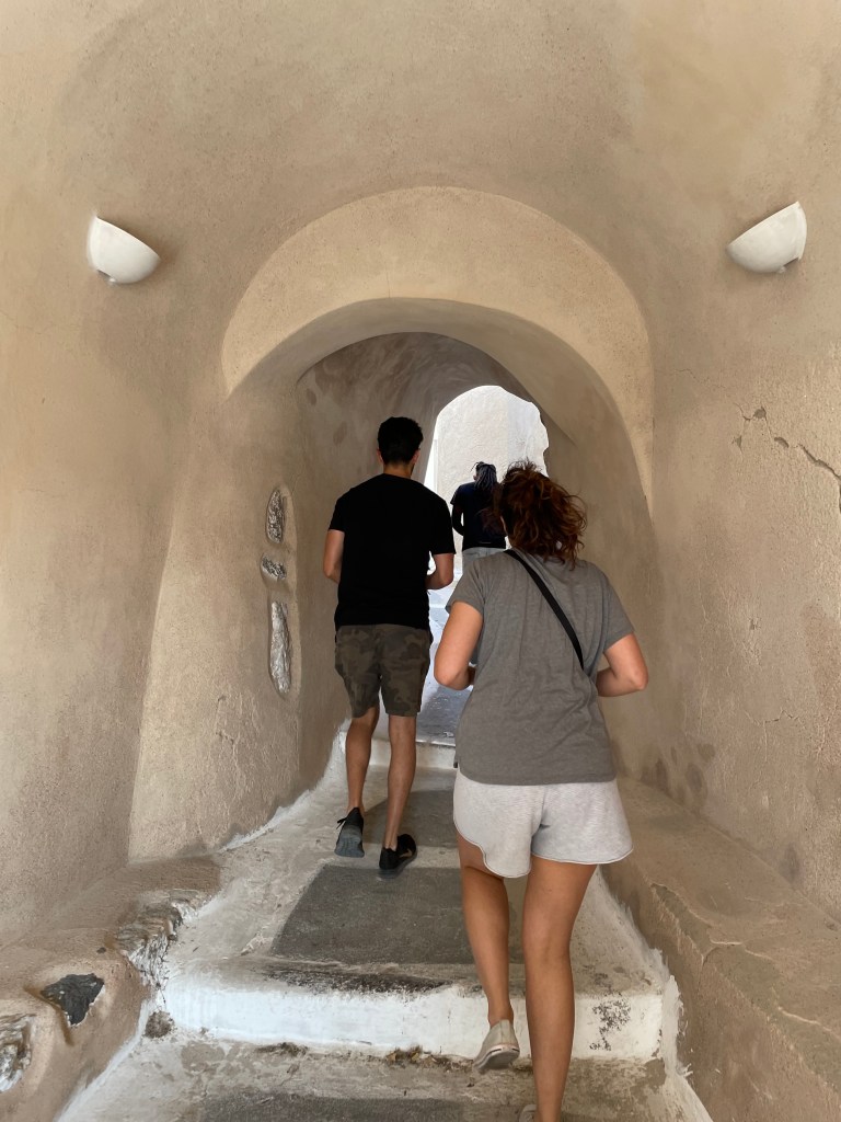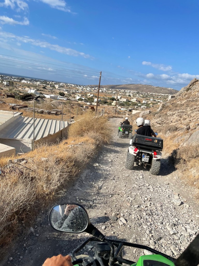 The next day we did an ATV Quad Santorini Experience Tour which I loved. It was a great way to see other parts of the island and love when the tour guides share some history! We drove by the black sand beach which I definitely want to spend a day there next time. Then went to Emporio which is the town most of the population lives. We visited an old castle, walked through the super narrow streets of old villages which were built that way for protection from the wind and pirates! It was really cool to go up to see the view of all three islands that were once one before the volcano erupted. We ended with a drive through the most authentic village Megalochori where we stopped for a coffee and got to chat with other couple on the tour which was really nice!