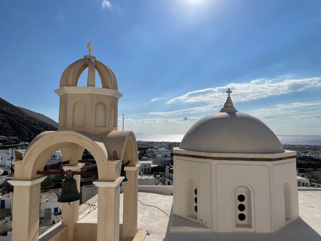 - Walk around shops and Explore-Go to Poniros Jewelry Shop and make a right to see the view of the blue dome church, the entrance is by the other jewelry shop Alexandros – left first day there open to leisurely check things out