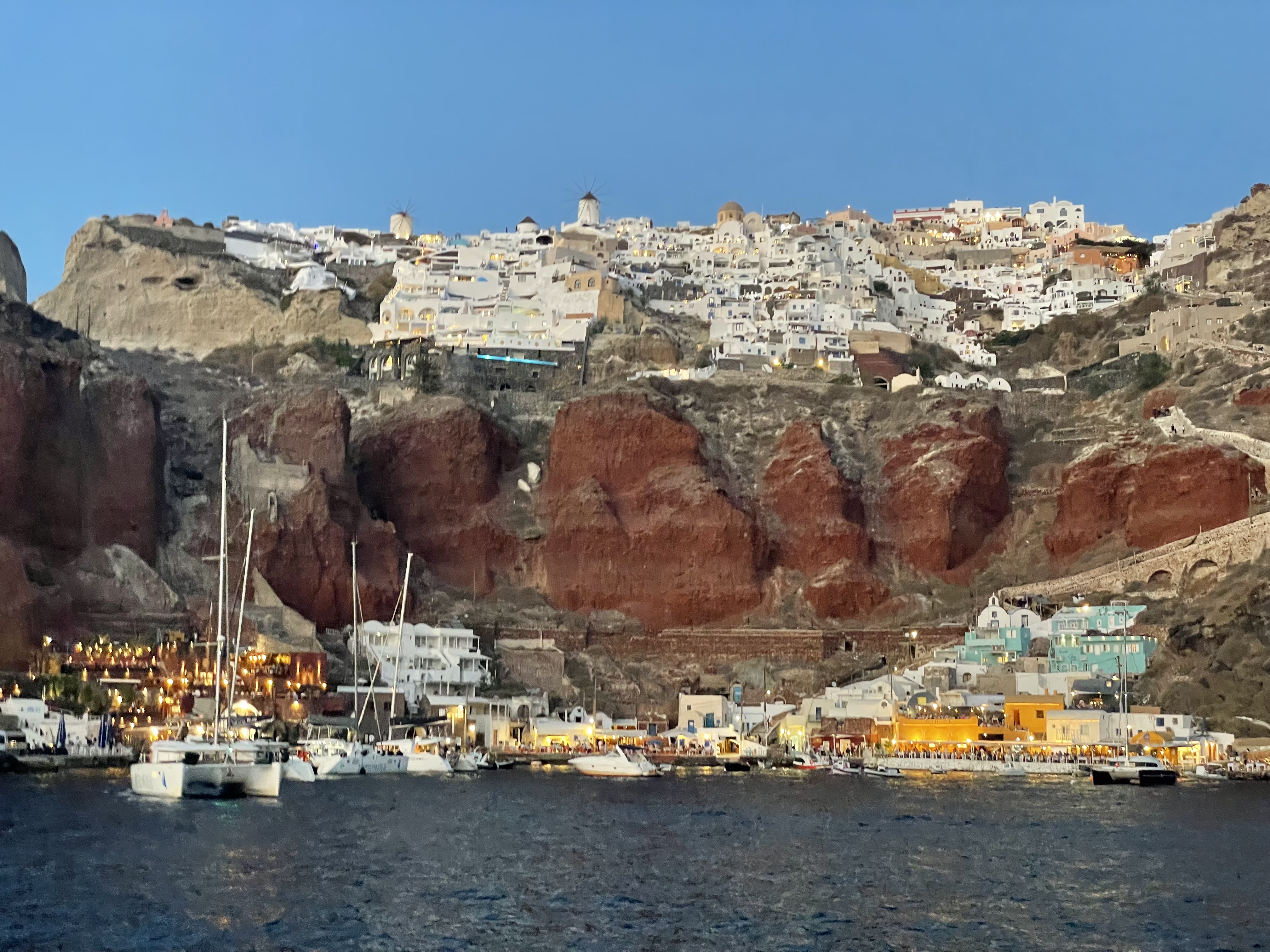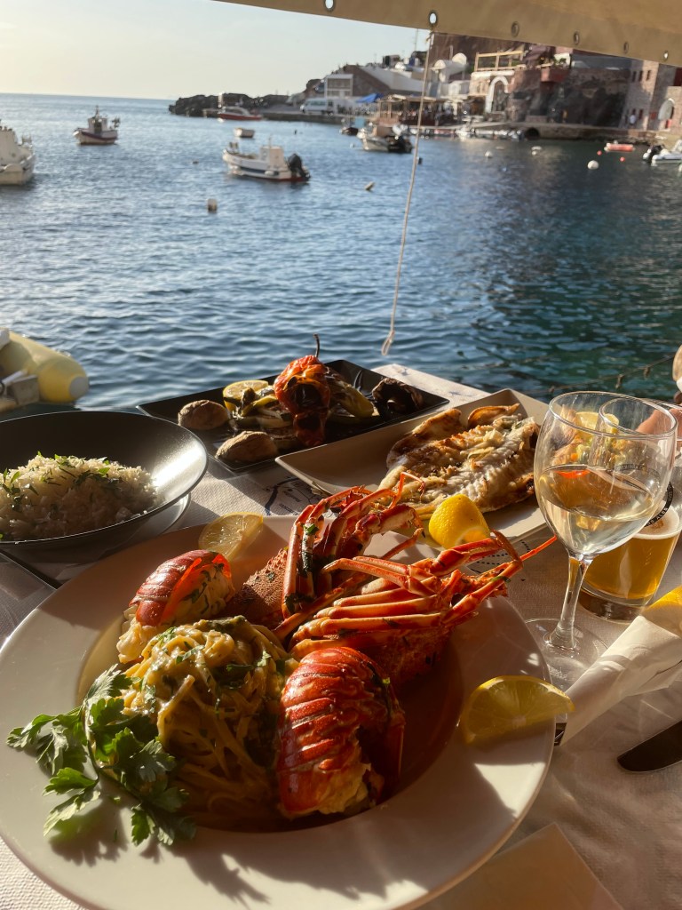 Ammoudi Bay! A must do when in Santorini! One of the reasons I chose to stay on this side of the Caldera was the walkway down to Ammoudi Bay, 300 steps down! A relaxing 3 hr. dinner right by the water. Do not rush your dinner! Jay tried to order dessert before he was even done with his meal and the gal looked surprised and told us to enjoy our meal. We got this reaction a few times. So when it Greece, take your time, savor and enjoy the long meals and slower pace of life! Do order the fish! It was really good which was the case everywhere; fresh, tasty and they debone it for you. It really was a dream to watch the sunset from here. All the restaurants along the bay seem similar. We chose Dimitris which was Jay’s favorite meal of the trip. The owner was lovely! She taught me how to eat the lobster legs. I regret not trying the Octopus, but for sure next time! https://www.dimitris-ammoudi-restaurant.com/