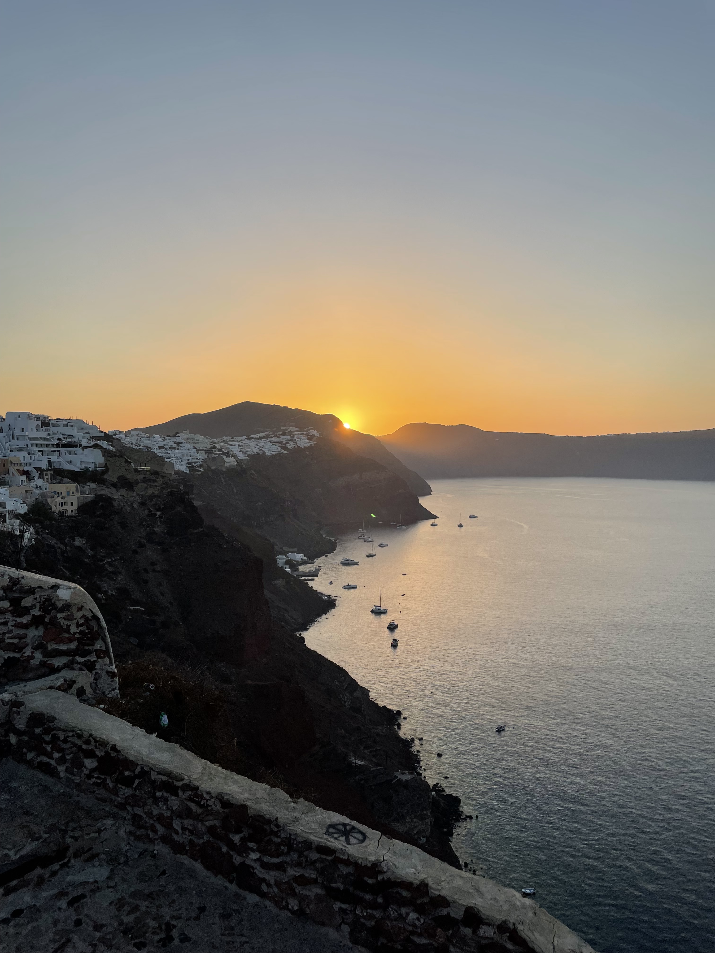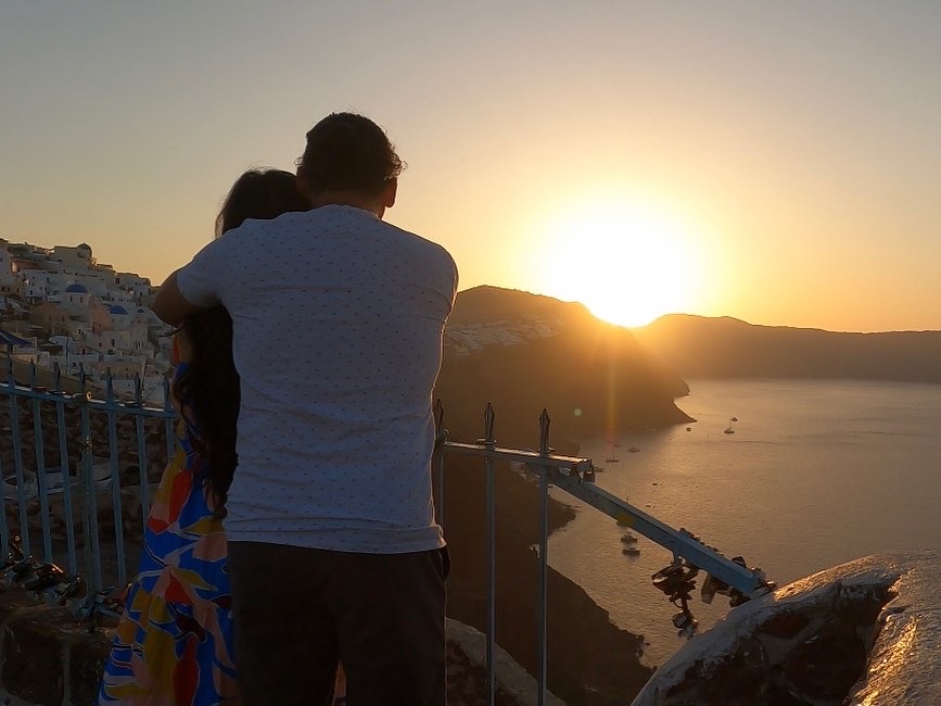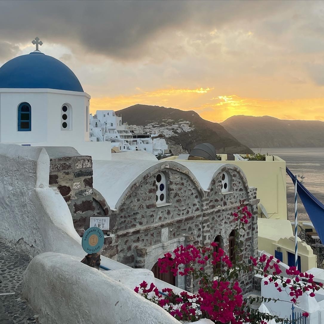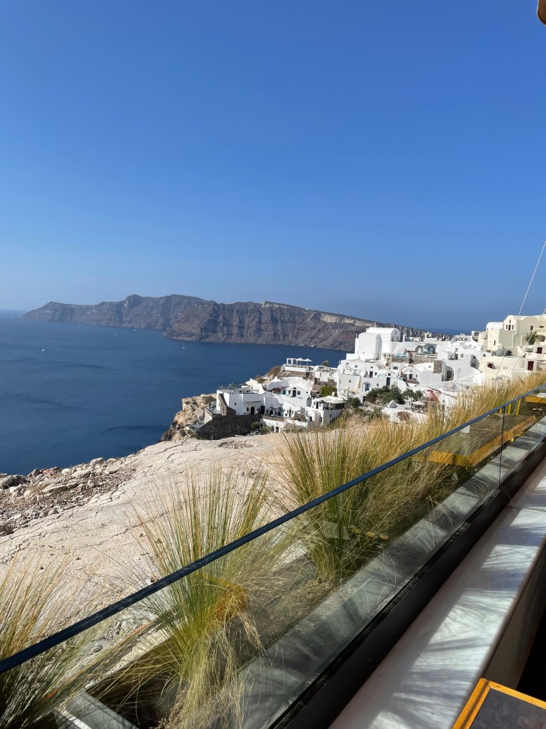 We stayed at the Oia Mare Villas https://oiamarevillas.business.site/ I read many reviews on Expedia and TripAdvisor as I am particular about cleanliness and location. It was the perfect pick I must say! I highly recommend! This isn’t a “you will hardly be in your room” it doesn’t matter where you stay kind of trip. One of the nice things about Santorini is relaxing at your hotel, enjoying the views from your room. We spent mornings and nights out on the balcony just staring out! Loving where you stay plays a huge factor in the overall experience, in my opinion anyway. I saw rooms ranging from $100-$600+, we were right in the middle at $348/night in euros ($400 in dollars) and so worth it! Oia Mare is clean, beautiful, a great location with a very friendly, helpful staff. Quick to reply over email as we prepared for our trip, they set up our transfer from the airport to the hotel with their porter that carried our luggage through the town to our room. Cars/buses drop you off at the main road near the Post Office since the streets are narrow and no cars allowed inside. The location is a short walk from the main road, down the caldera so feels private, but also not too far from all the shops and restaurants. Super easy check in, welcomed with a glass of wine. Anxious to wake up early the next morning to catch the sunrise up at the Oia Castle. Absolutely beautiful!