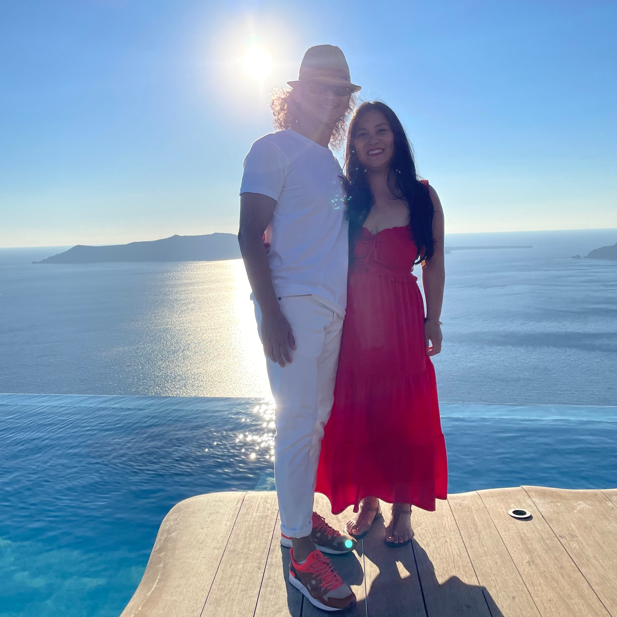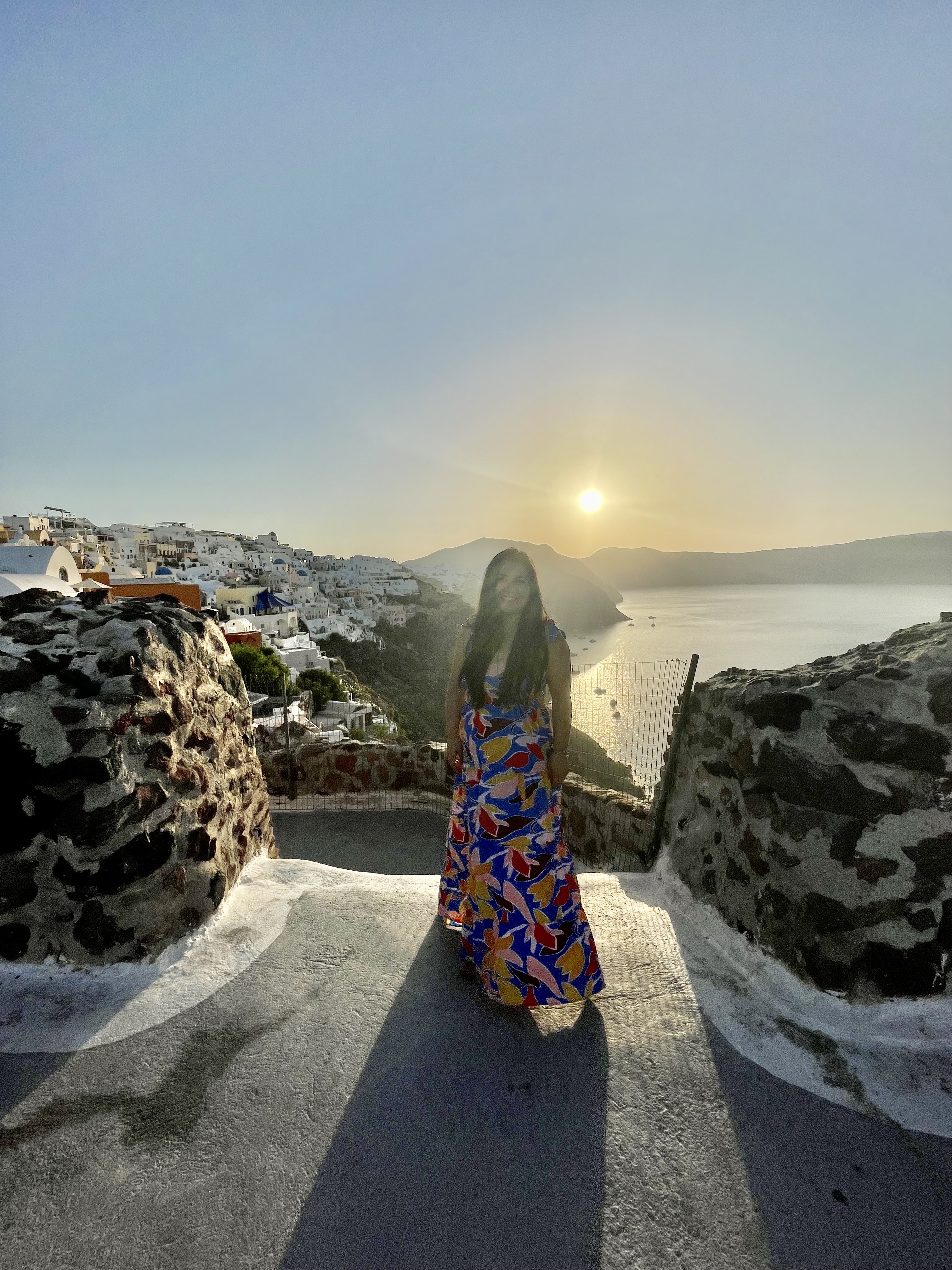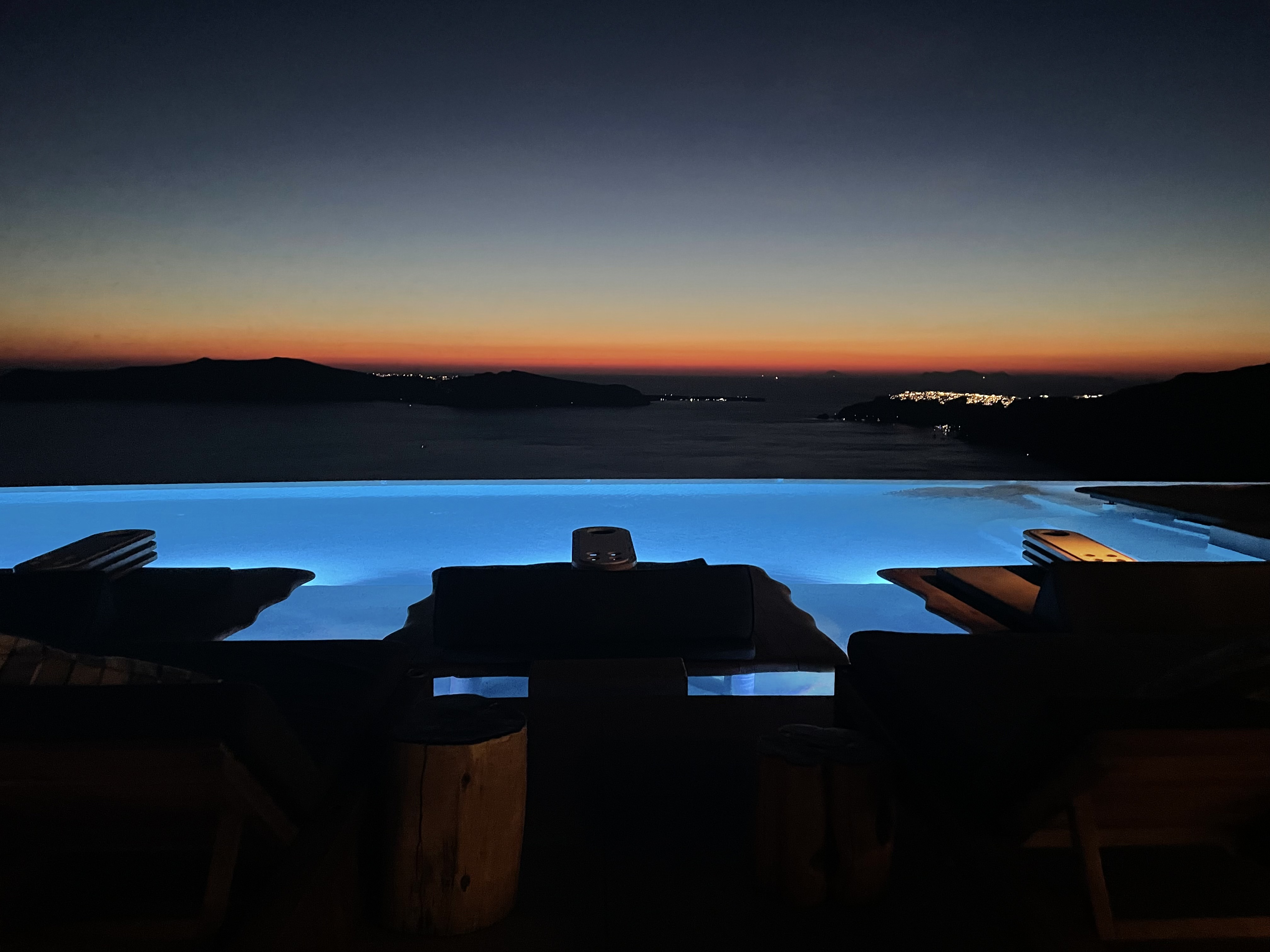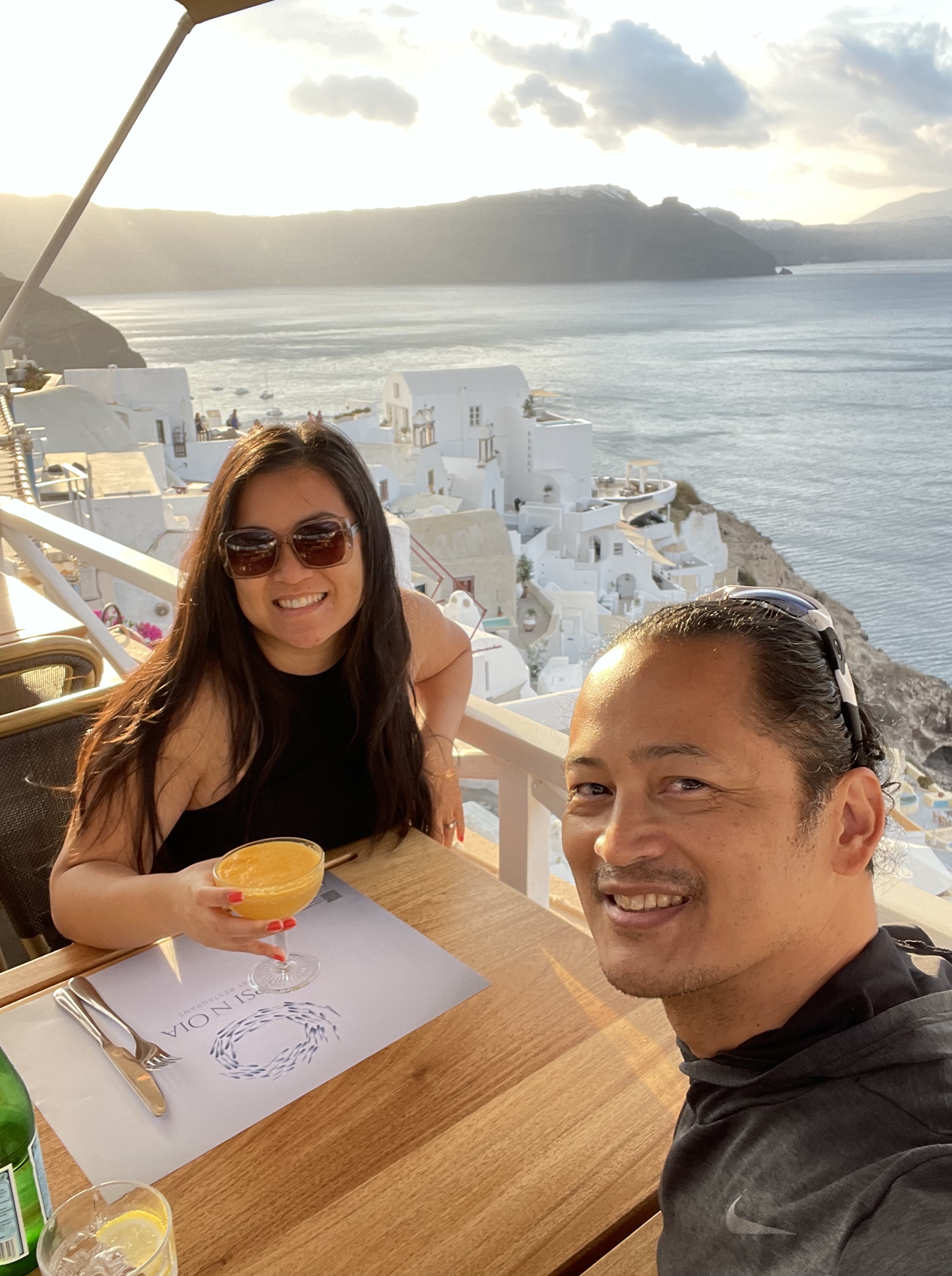 We stayed at the Oia Mare Villas https://oiamarevillas.business.site/ I read many reviews on Expedia and TripAdvisor as I am particular about cleanliness and location. It was the perfect pick I must say! I highly recommend! This isn’t a “you will hardly be in your room” it doesn’t matter where you stay kind of trip. One of the nice things about Santorini is relaxing at your hotel, enjoying the views from your room. We spent mornings and nights out on the balcony just staring out! Loving where you stay plays a huge factor in the overall experience, in my opinion anyway. I saw rooms ranging from $100-$600+, we were right in the middle at $348/night in euros ($400 in dollars) and so worth it! Oia Mare is clean, beautiful, a great location with a very friendly, helpful staff. Quick to reply over email as we prepared for our trip, they set up our transfer from the airport to the hotel with their porter that carried our luggage through the town to our room. Cars/buses drop you off at the main road near the Post Office since the streets are narrow and no cars allowed inside. The location is a short walk from the main road, down the caldera so feels private, but also not too far from all the shops and restaurants. Super easy check in, welcomed with a glass of wine. Anxious to wake up early the next morning to catch the sunrise up at the Oia Castle. Absolutely beautiful!