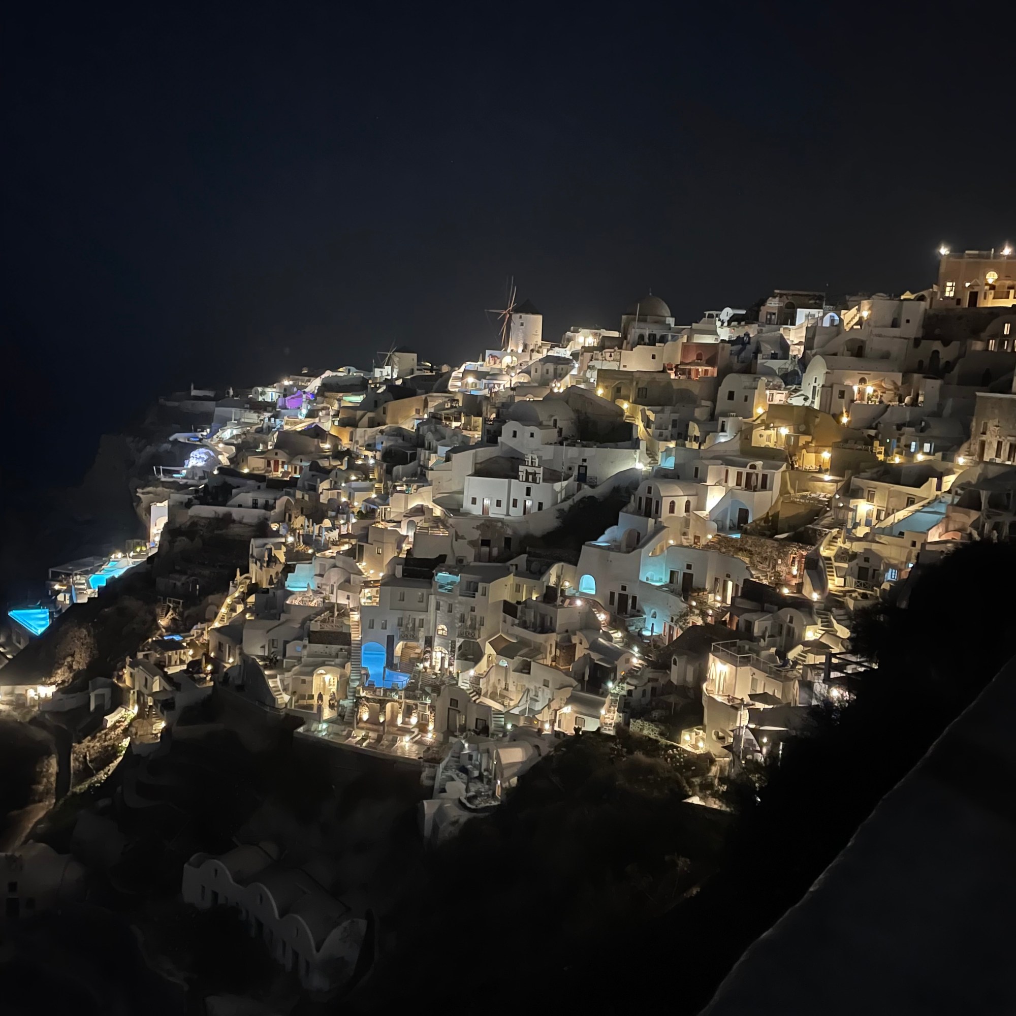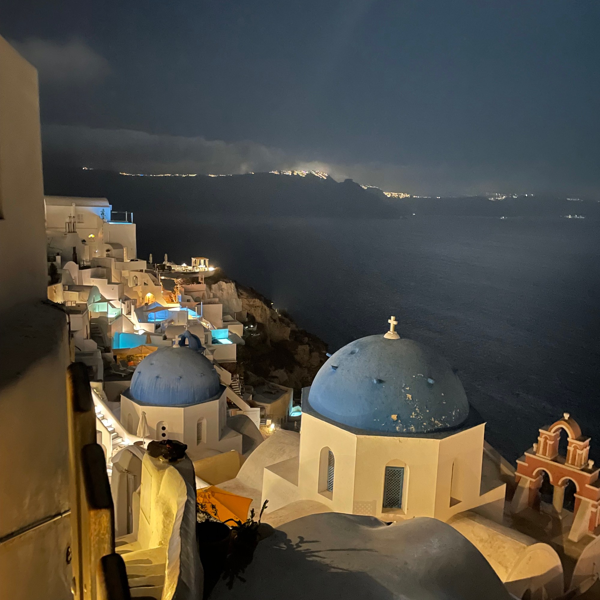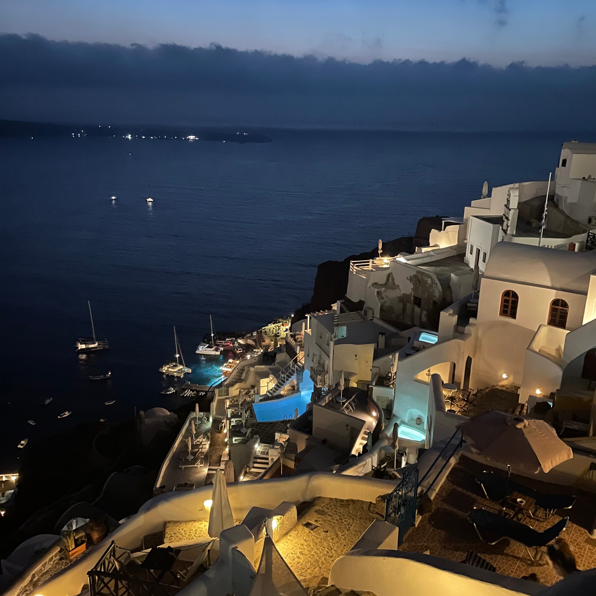 Spent a week in Greece for our 21st anniversary, 80% of our time in Santorini, 20% in Athens. One word to describe Santorini, UNREAL! We arrived in Santorini late on a Monday night and I was bummed about missing the sunset, but very quickly got over it because it was just so stunning at night! After checking into our hotel, we took a walk through the town and up to the Oia Castle, super close to where we stayed.