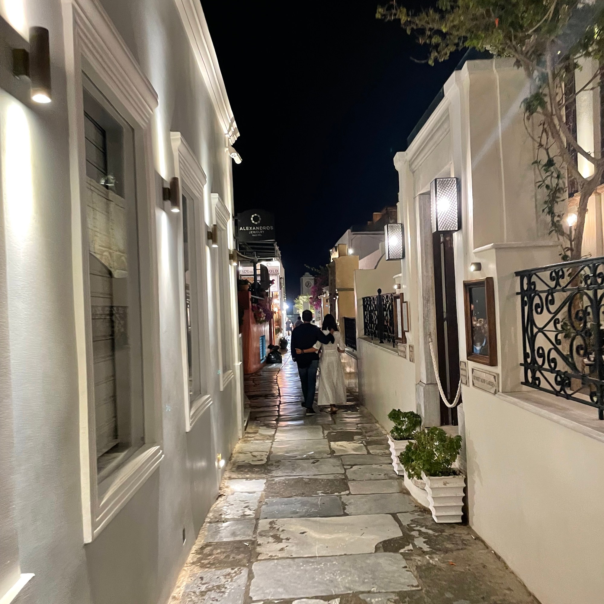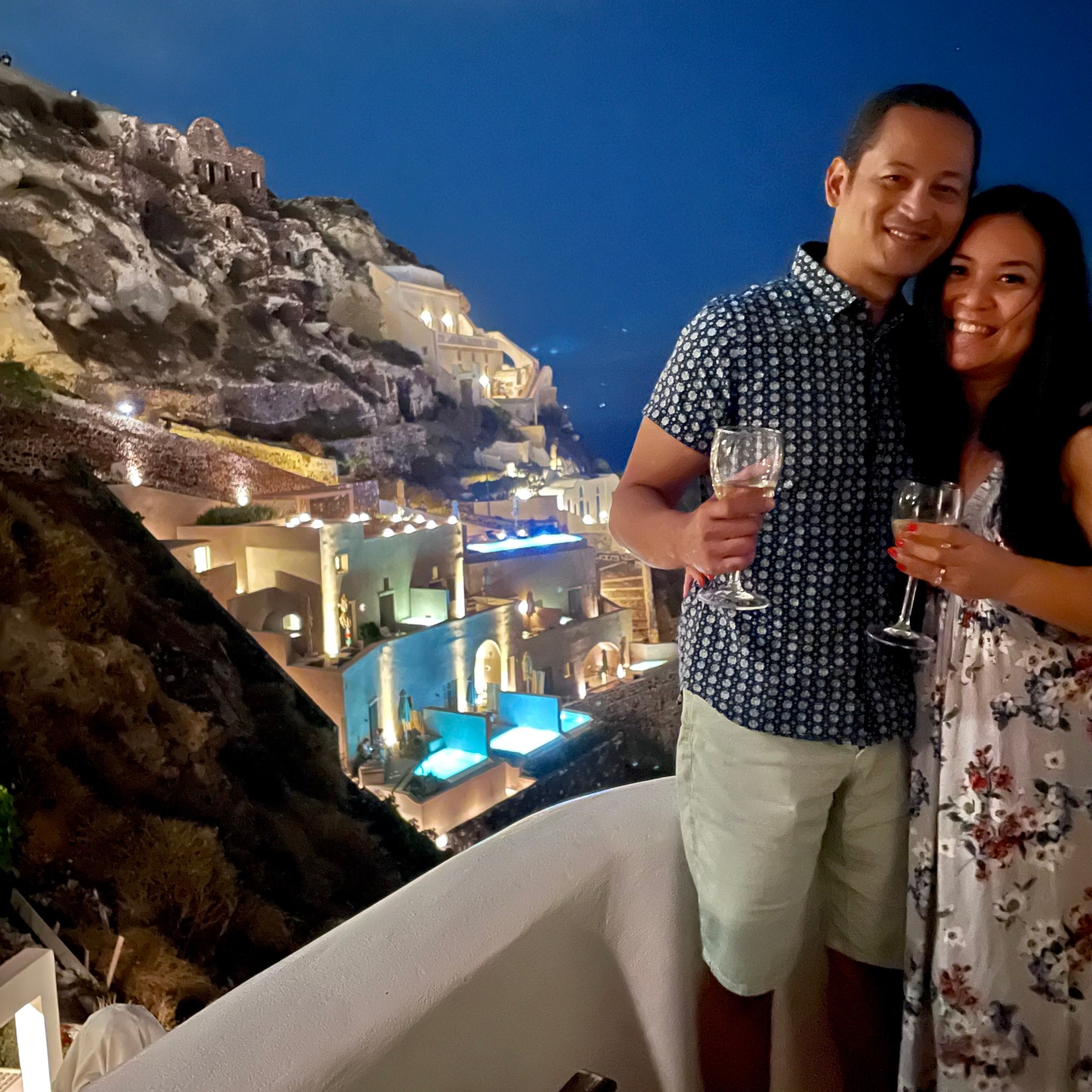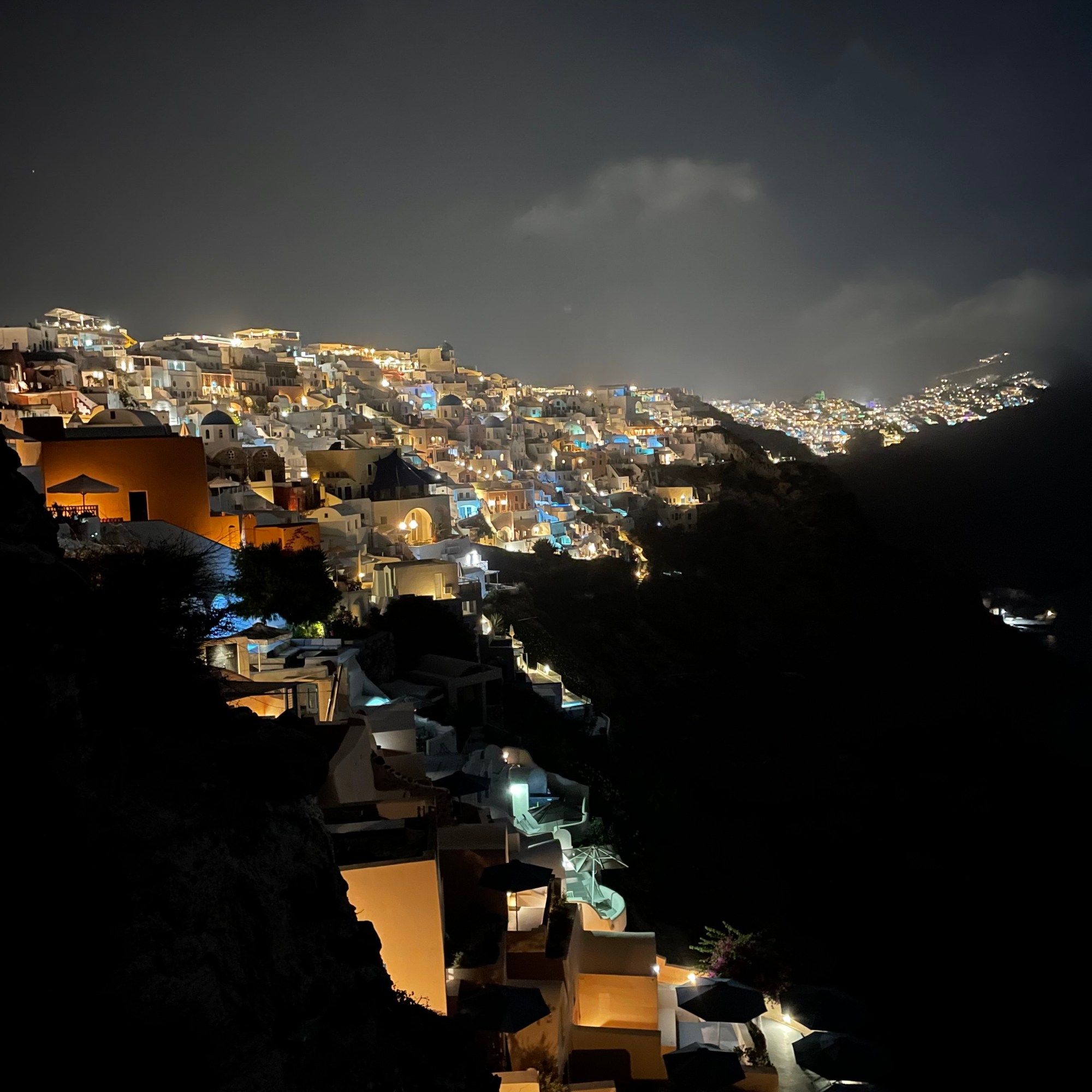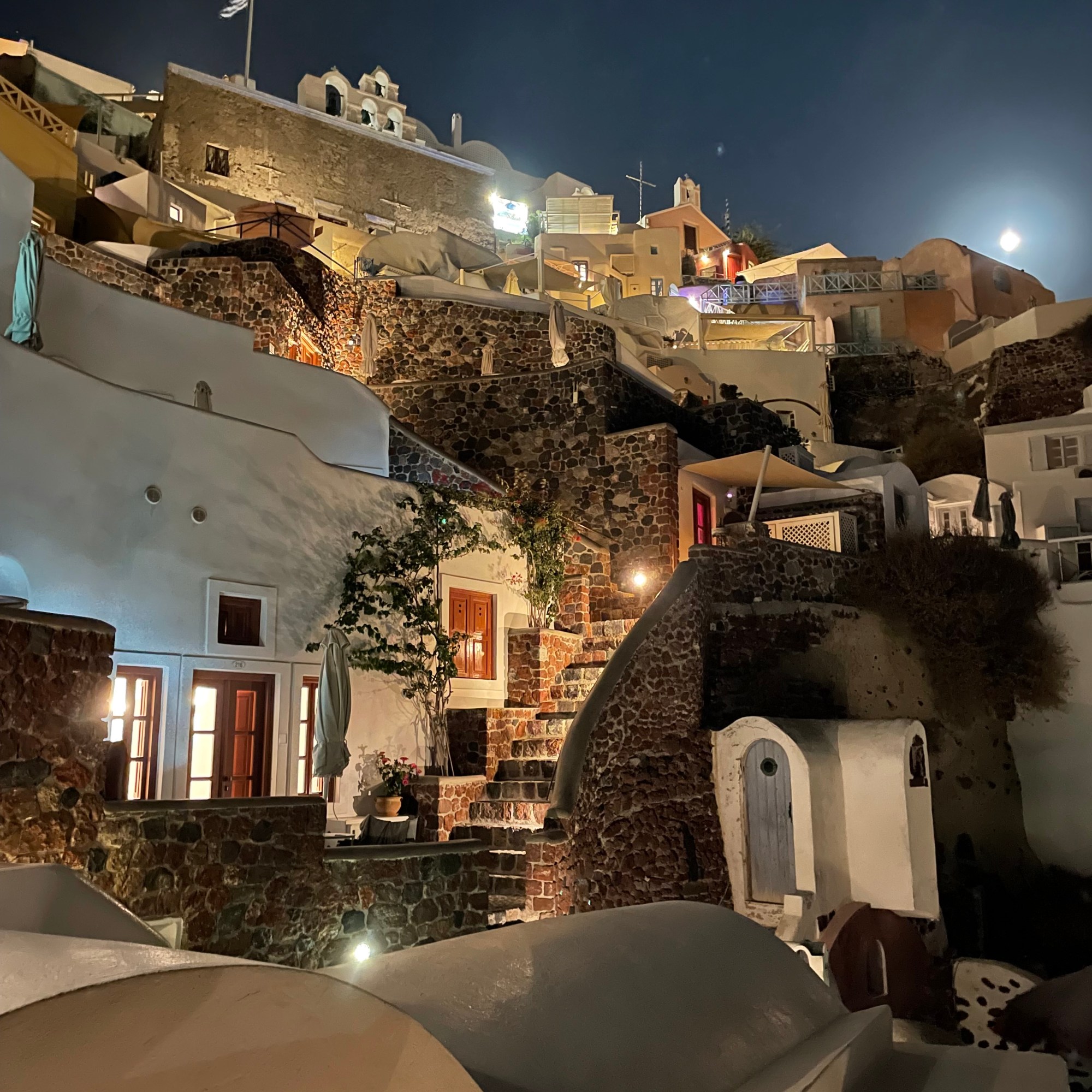 Spent a week in Greece for our 21st anniversary, 80% of our time in Santorini, 20% in Athens. One word to describe Santorini, UNREAL! We arrived in Santorini late on a Monday night and I was bummed about missing the sunset, but very quickly got over it because it was just so stunning at night! After checking into our hotel, we took a walk through the town and up to the Oia Castle, super close to where we stayed.