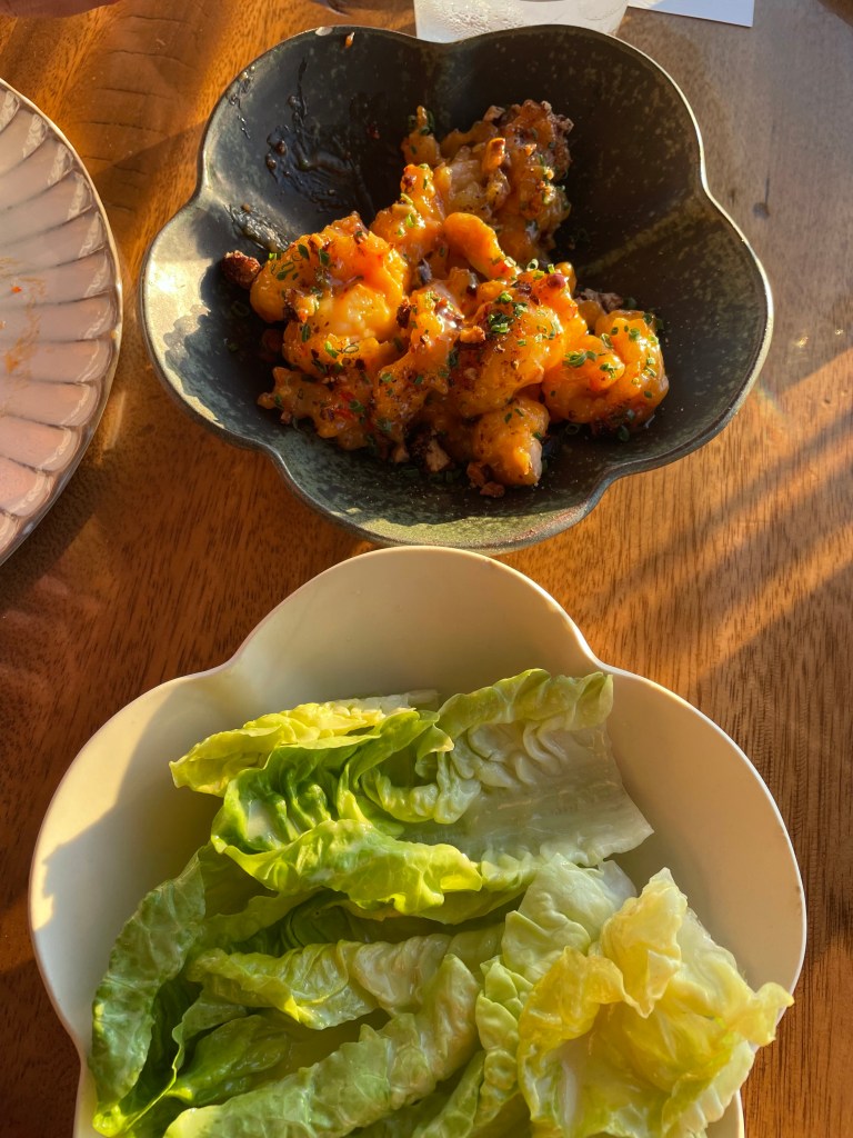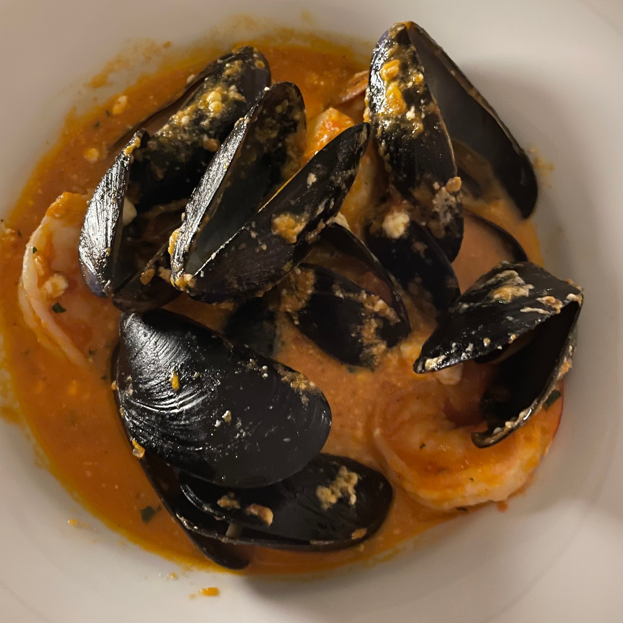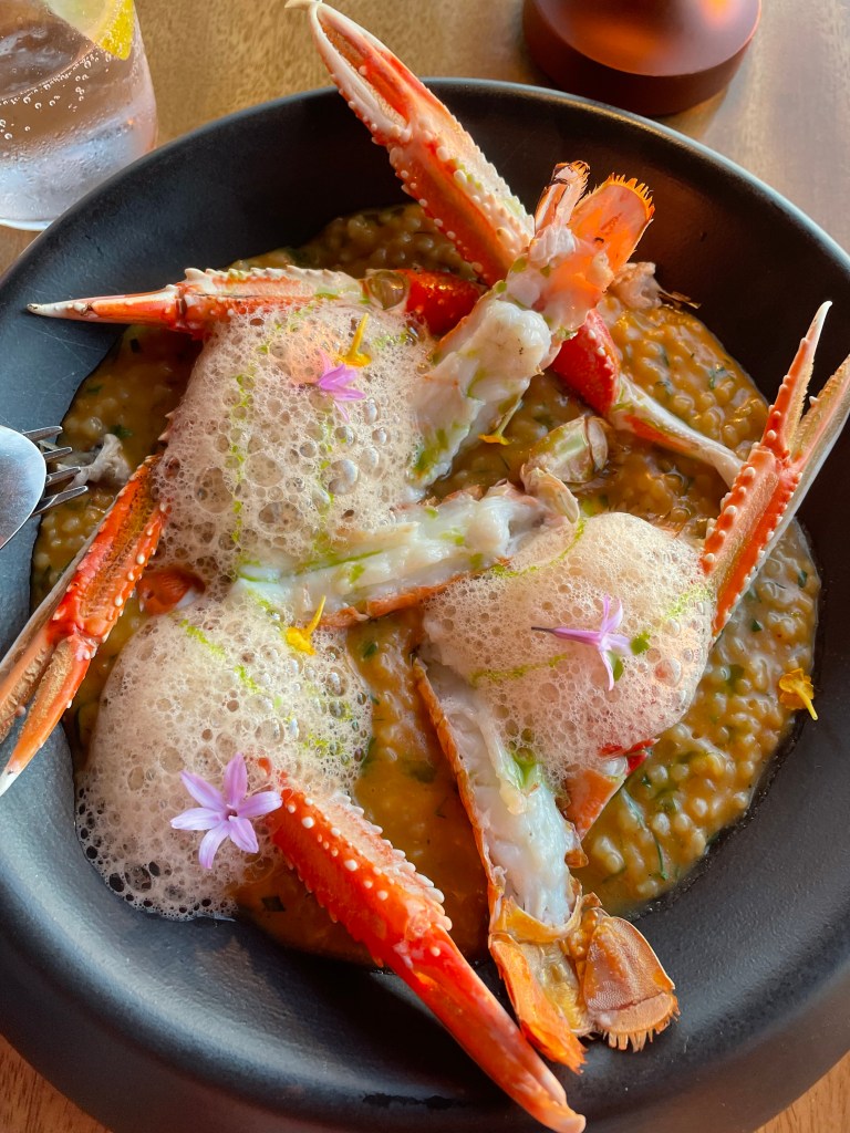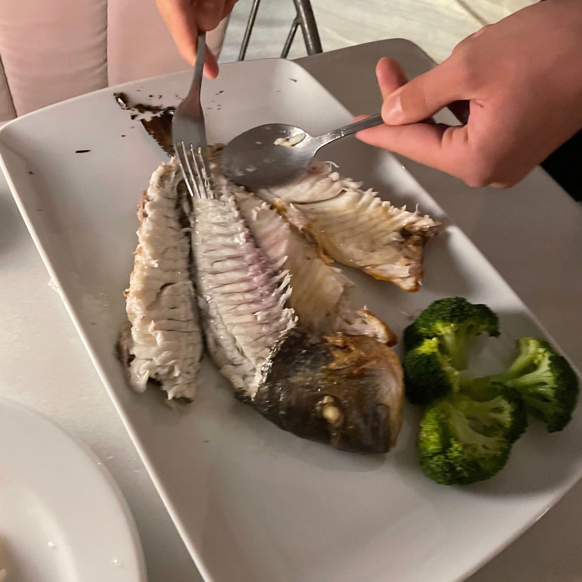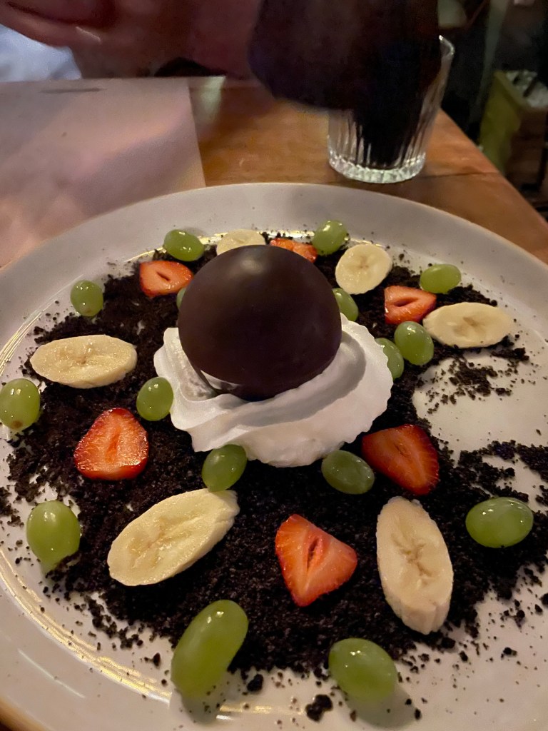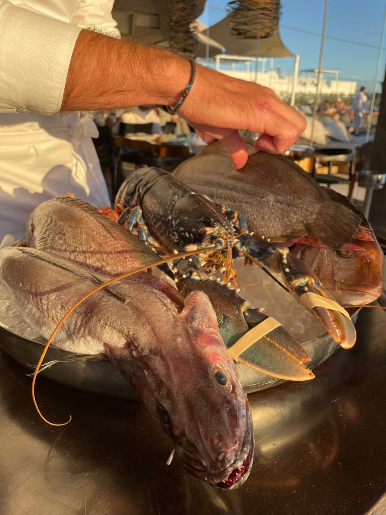 Welcomed with Champagne! Then a cart of the fresh catch of the day came by which after prepared was so soft and buttery, the best! Jay still votes Dimitris for best fish, I vote Cavo Tagoo, so must revisit both! Amberjack which is my new favorite fish was also amazing! Shrimp and Langoustines also very good, but yet again the fish was the star of the day! The most delicious amazing dinner! A dark chocolate dessert and more champagne! Definitely still on the bucket list for another return!