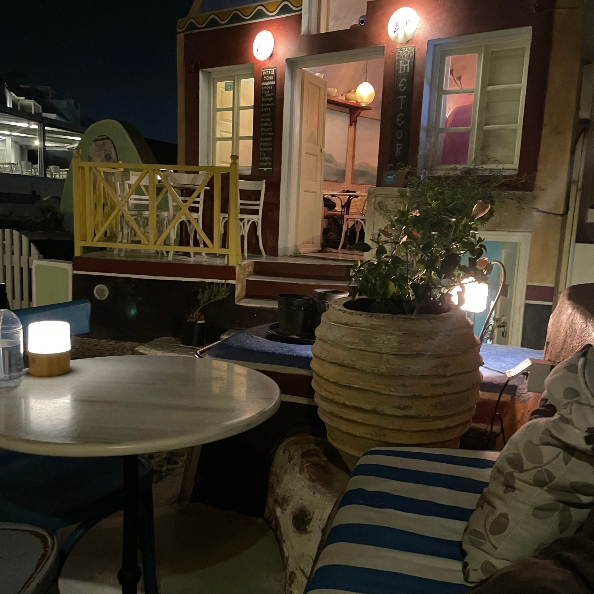 - We originally were going to Taxi/Bus to Thira for the rest of the day to explore with a dinner reservation at To Briki, but decided to cancel and just hang out in Oia since there are so many similar spots and thought easier to stay close. We went to 218 cafe which was super relaxing! I would like to try To Briki next time! https://www.tobriki.com/