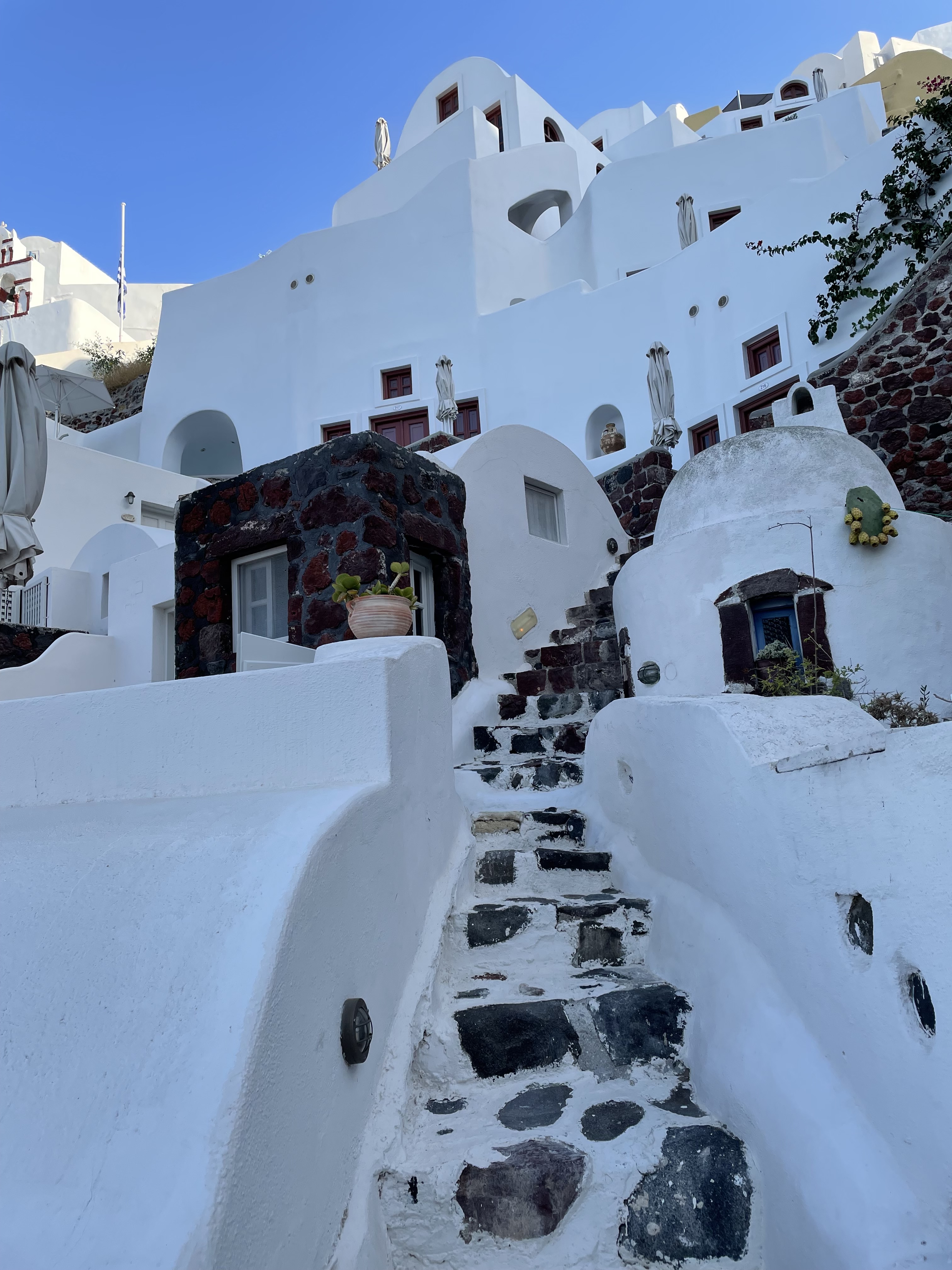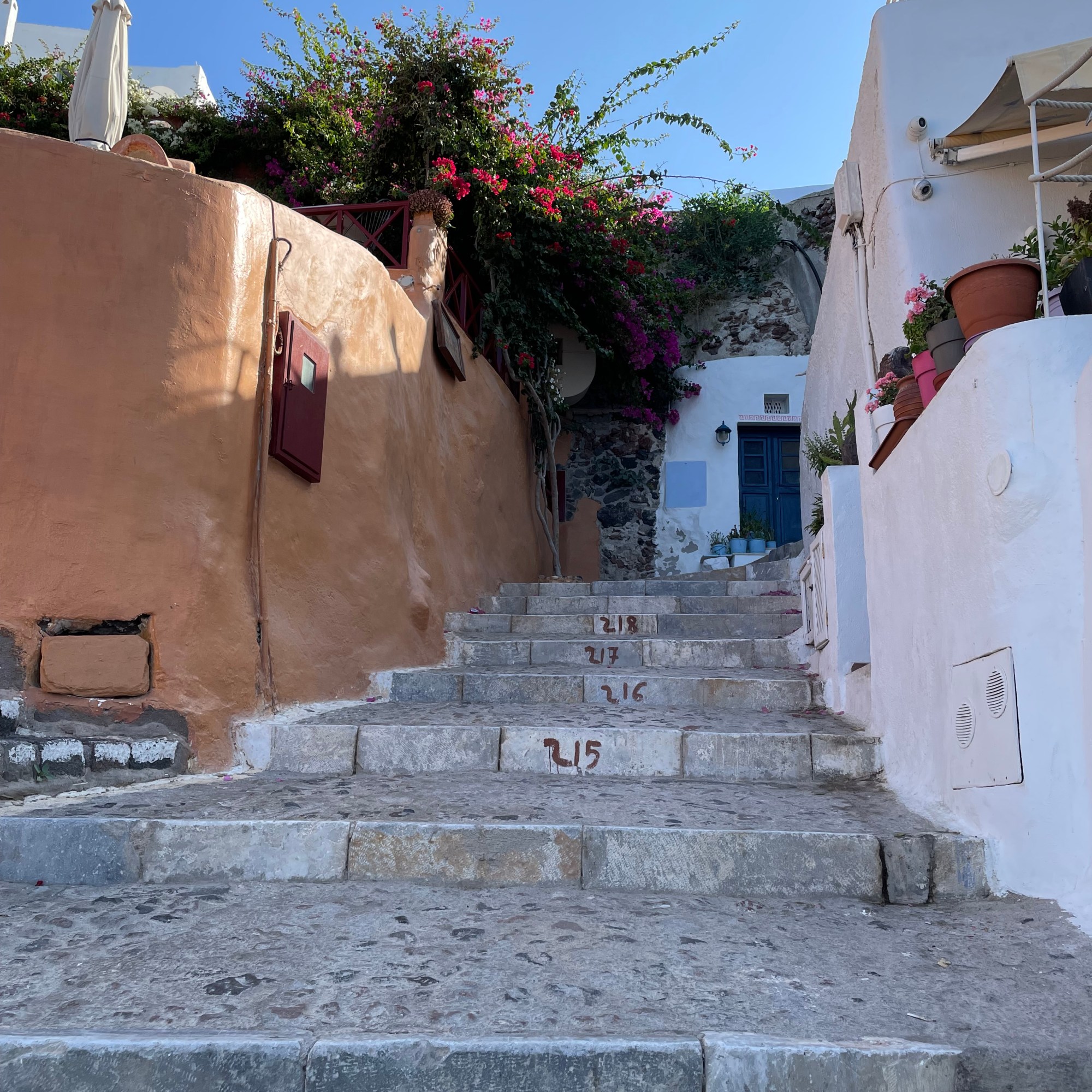 - Oia – definitely recommend staying here! We got a small feel for the other towns which are similar but feel a bit more spread out. I like the convenience of being right in the middle of a smaller town. I’m sure the other towns are just as nice, and can’t really go wrong with anywhere in Santorini, but if we came back we would still stay in Oia for the beauty and convenience. The streets are just so lovely to walk along!
