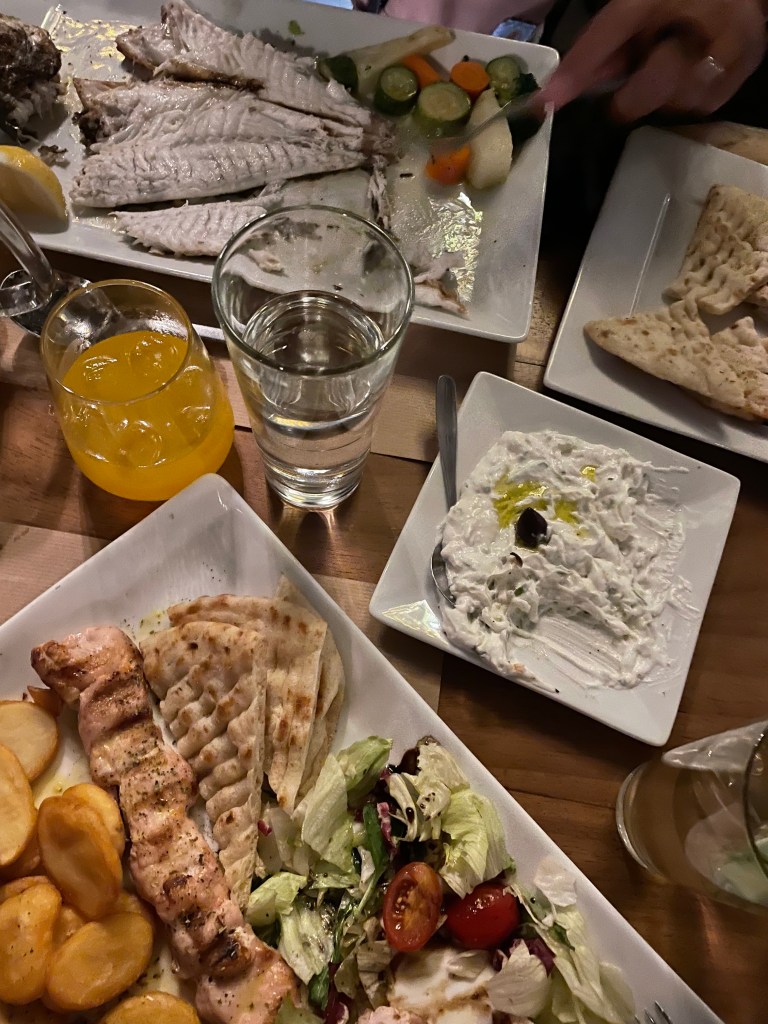 Kastro – where we had our first meal, had a good burrata salad, fish, seafood stew and where we got our first taste of Orange Pie!