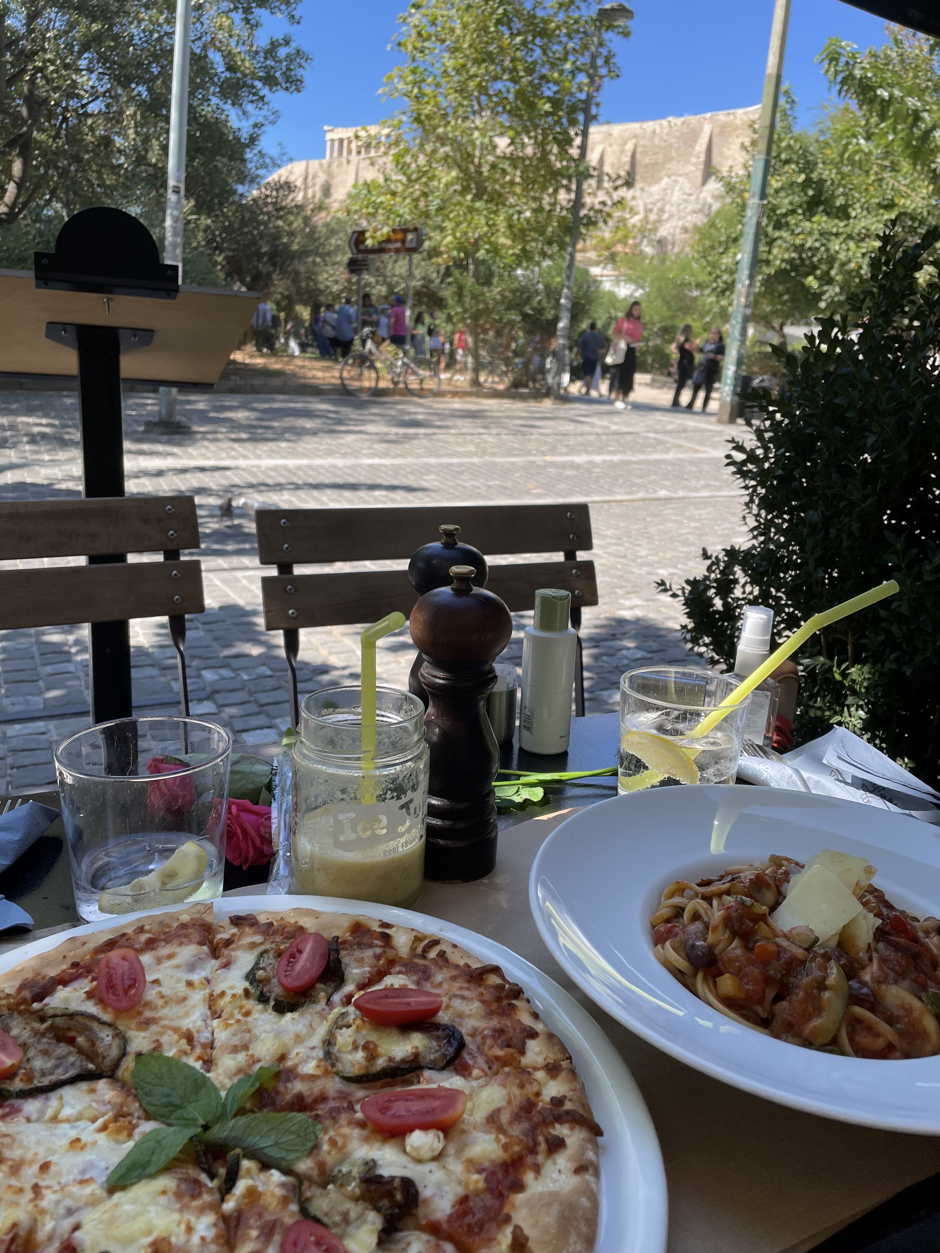 - Grabbed Lunch at one of the closeby restaurants that had a view of the Acropolis, Makriyianni’s for good pizza and pasta