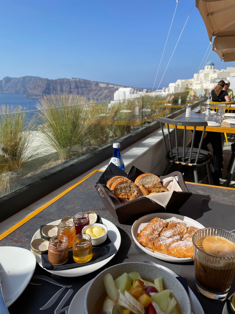 Restaurants – other restaurants worth mentioning. There are so many along the streets, but I think we picked some winners! Thalami for breakfast has an amazing view and a simple yet very yummy breakfast. We had the bread basket, Greek yogurt with fruit & honey, and a dessert pastry. We also got the salmon toast but I’d pass on that one next time.