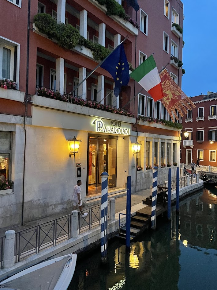 The water taxi took us to the doorstep of our hotel, Hotel Pappadopoli. https://all.accor.com/hotel/1313/index.en.shtml?utm_campaign=seo+maps&utm_medium=seo+maps&utm_source=google+Maps